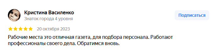 Ненавязчивость, корректность и внимательность – золотые качества менеджеров газеты «Рабочие места», за который следует награждать премией и огромной благодарностью!