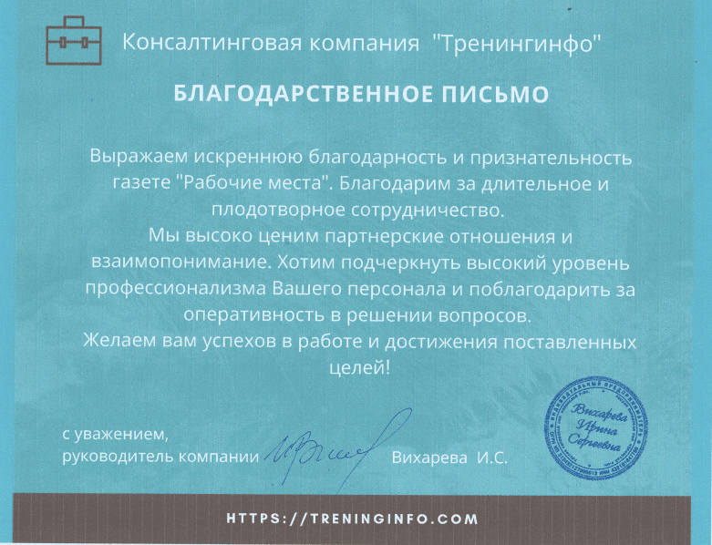 Благодарим вас за продуктивное сотрудничество и высокий профессионализм!